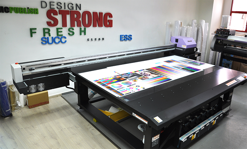 מכונה ייחודית המאפשרת הדפסה ישירה על קשיחים מאפשרת הפקות דפוס מתקדמות כגון הדפסה על קרטונים, סטנדים ממותגים מקרטון, פח, פרספקס, עץ, פי וי סי, קאפה, אריזות מיוחדות, זכוכית וכל חומר שרק עולה בדמיונכם, באיכות מדהימה כולל צבע לבן וUV סלקטיבי. זוהי מכונה יחידה מסוגה בישראל המאפשרת הפקת כיסאות ממותגים, שולחנות ודלפקי תצוגה מקרטון קשיח ואיכותי, הדפסות קנבס מיוחדות לתליה על קירות המשרד, הדפסות על זכוכית לחיפוי קירות, מטבחים ועוד.